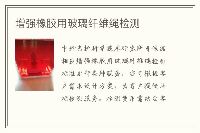 關(guān)鍵詞:增強橡膠用玻璃纖維繩測試機構(gòu),增強橡膠用玻璃纖維繩測試方法,增強橡膠用玻璃纖維繩測試案例